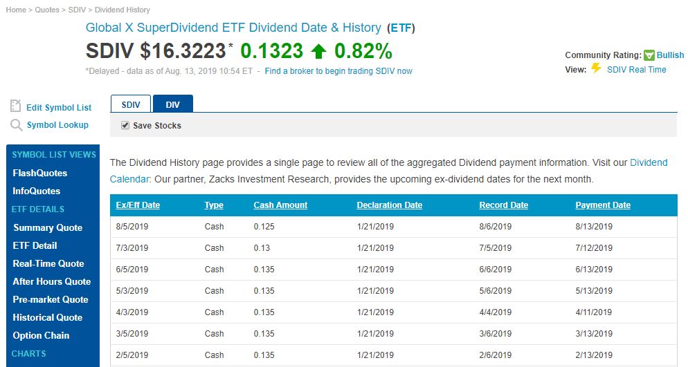 이런 경우 "sdiv dividend history" 로 검색하시는 것이죠. 여러 검색 결과가 나올텐데 아무 것이나 클릭하셔도 될 것 같습니다. 저는 아래와 같이 나왔네요