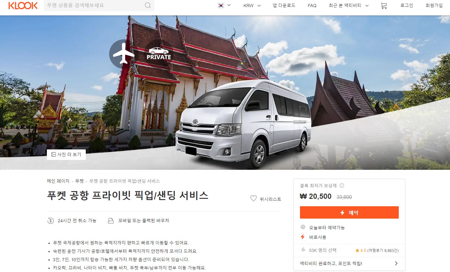 저는 주로 공항 픽업에 클룩(Klook)을 이용합니다.