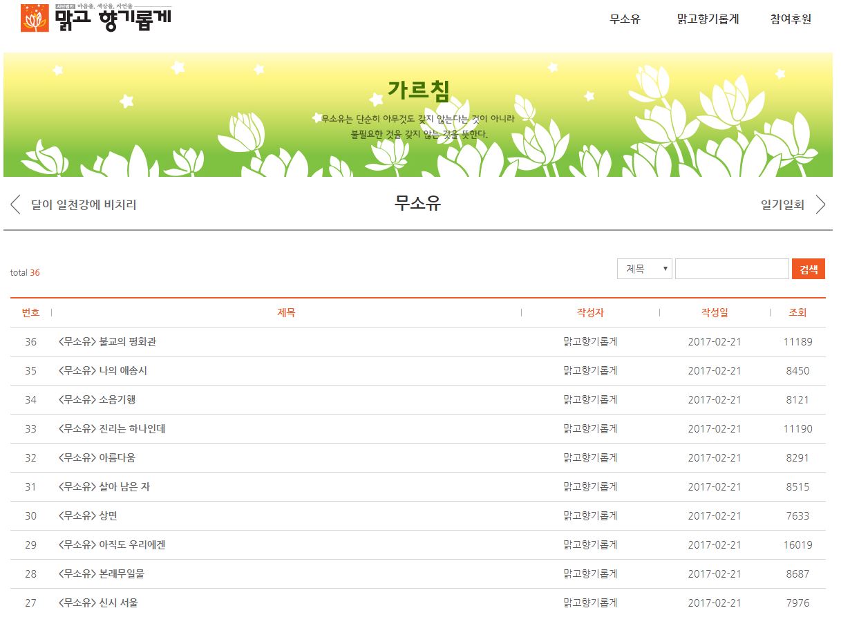 "맑고 향기롭게" 에 가셔서 상단의 "무소유"를 클릭한 다음, 다시 "무소유"를 클릭하시면 되고