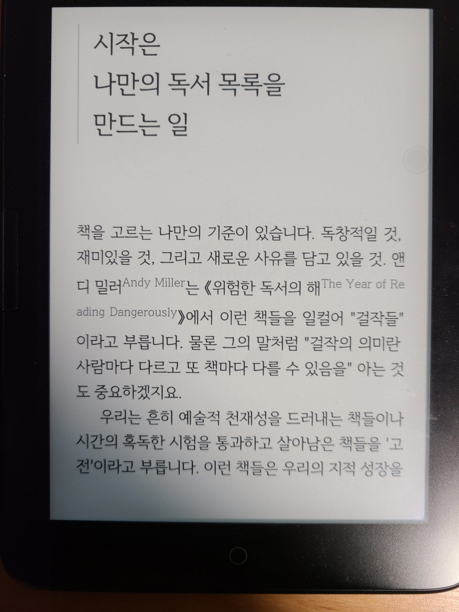 처음 잠깐 읽어던 다치바나 다카시 님이나, 장석주님 그리고 에두아르 님과 저는 가장 큰 차이가 있습니다. 앞의 세 분은 책 사는데 돈을 아끼지 않아요. 하지만 저는 돈이 없어서 책 사는데 돈을 아낍니다 ㅠㅠ. (요즘 책 사는게 너무 비싼 것 같아요). 그리고 저는 책을 보관할 곳이 많지 않아요. (그래서 전자책으로 왔죠)