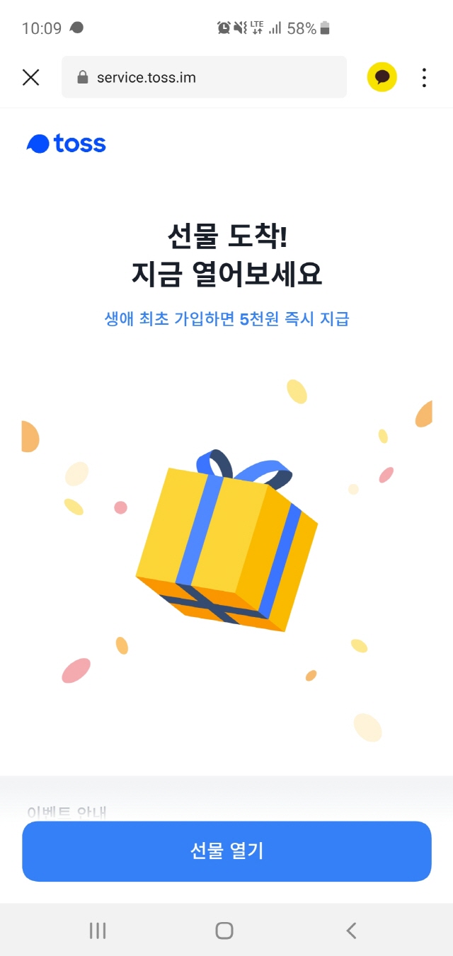 제가 공유를 하면 랜덤하게 상금을 받을 수 있는 황금색 상자를 줍니다.