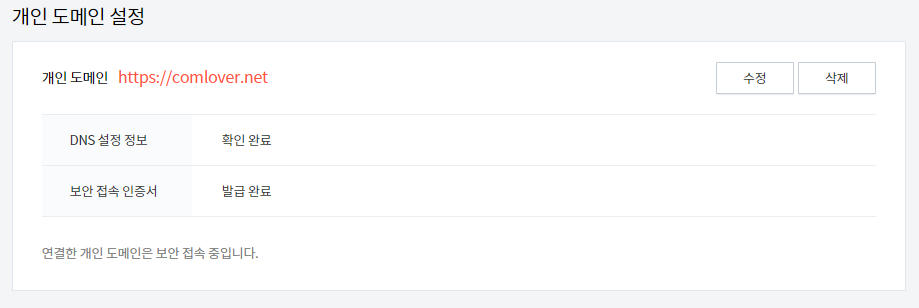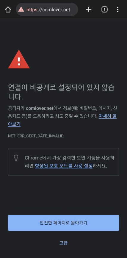 지난 10월 4일 제 블로그를 https://comlover.net 도메인으로 접속했을 때, 문제가 생겼었습니다. 그때 접속해주신 분들께는 죄송하네요.