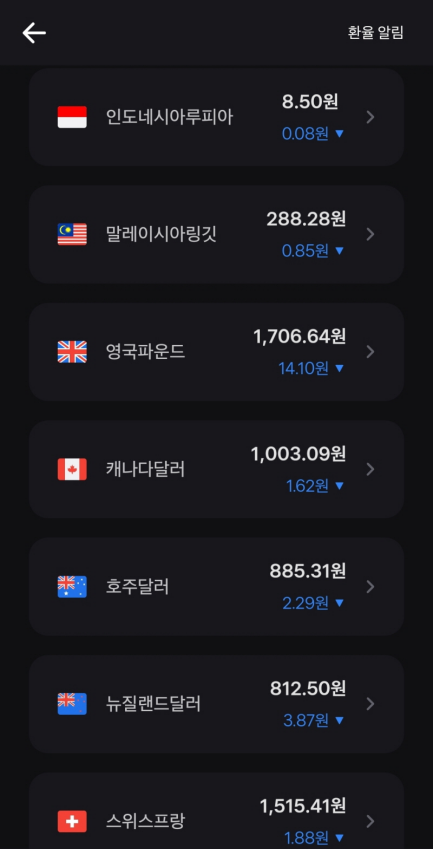 아래 화면들은 오늘 인도네시아 루피아(IDR) 환율을 본 것입니다. (매일 매일 다릅니다!)