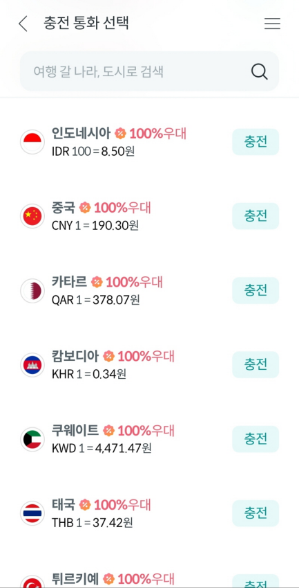 - 트래블월렛 100 IDR = 8.57원