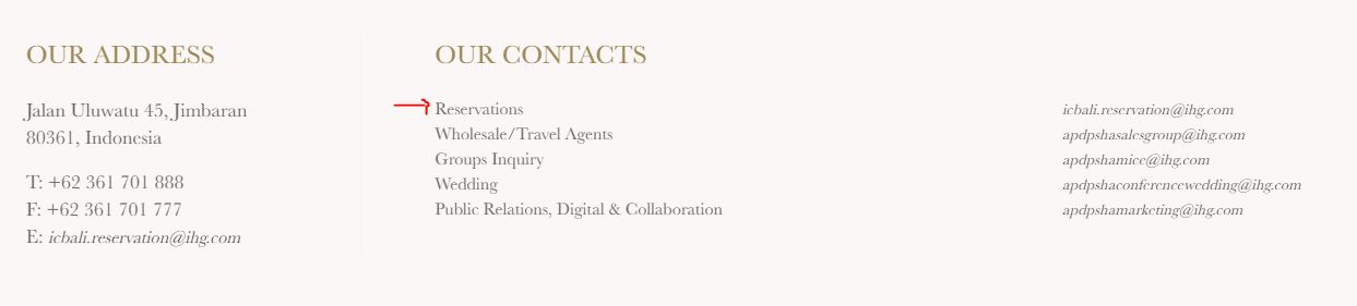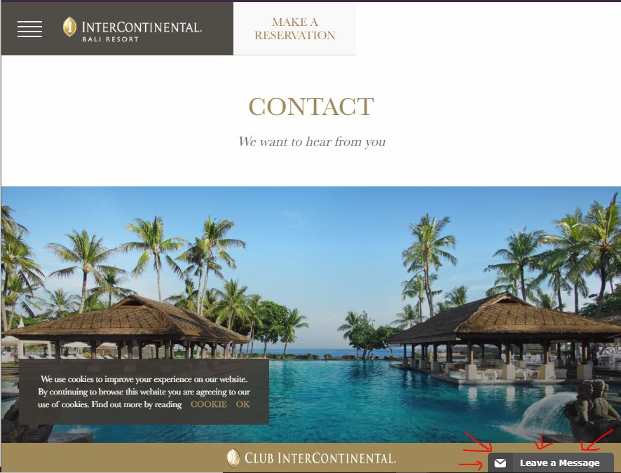 - 홈페이지에 처음부터 문의하기가 있는 경우가 있습니다. 이걸 이용해 보셔도 좋아요 인터컨티넨탈 발리의 경우는 아래의 위치에 있네요