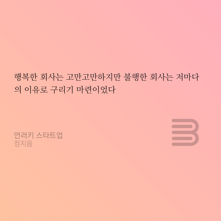 9월에도 몇 권의 책을 읽었는데요, 그 중에서 제일 좋았던 책은 바로 정지음 작가님의 <언러키 스타트업> 입니다.