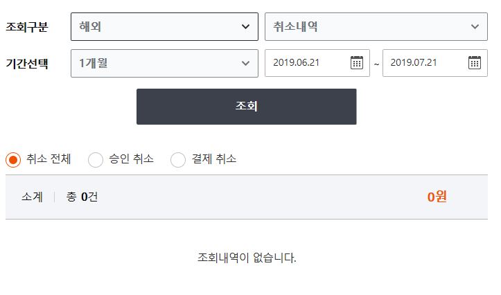 취소 내역에 아무것도 없네요. 결국 취소 된 것도 없다는 것입니다.